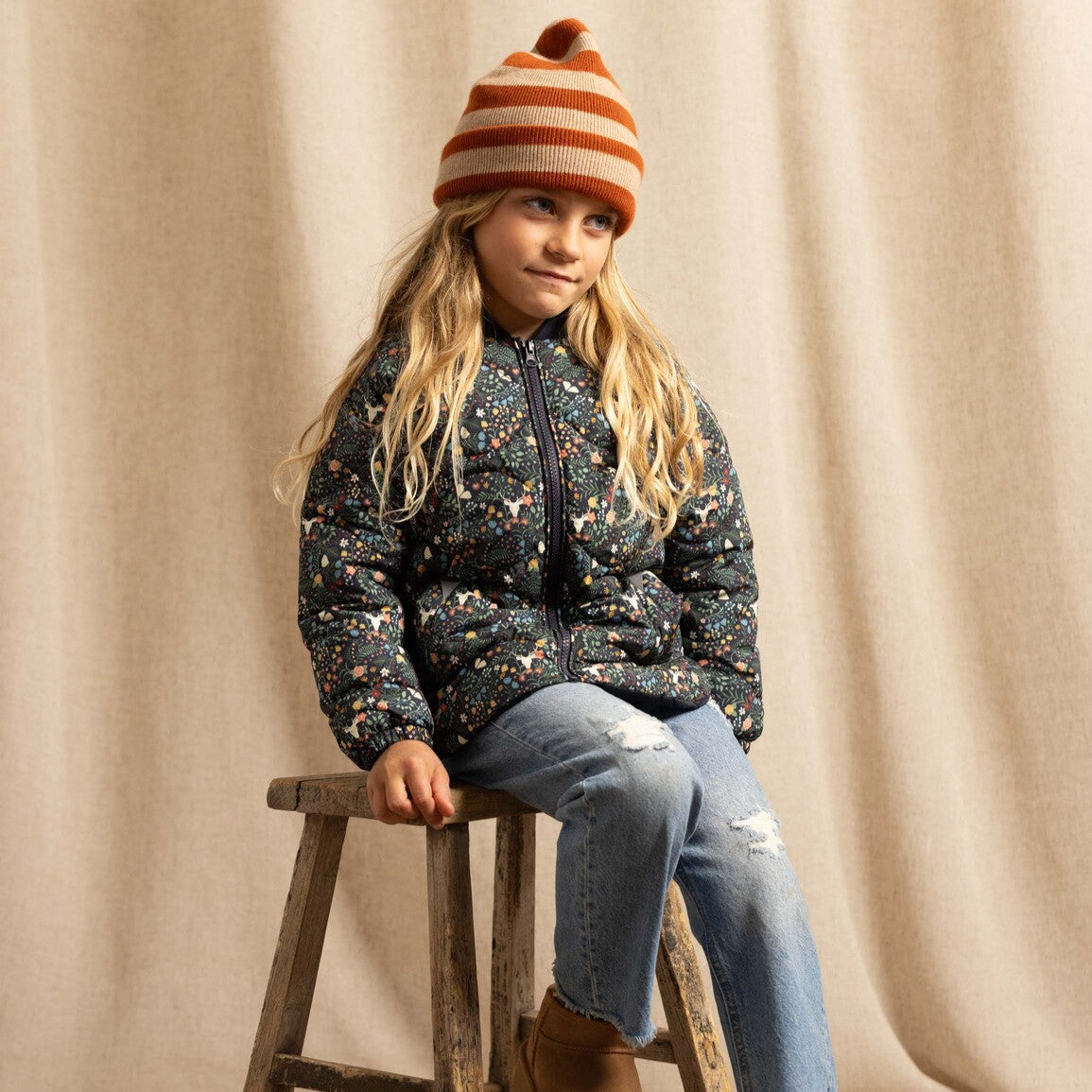 A go-to piece for transitional weather, this kids’ bomber jacket is perfect for layering. Wear it on its own during autumnal days, or pair it under a raincoat in colder months for extra insulation without the bulk.