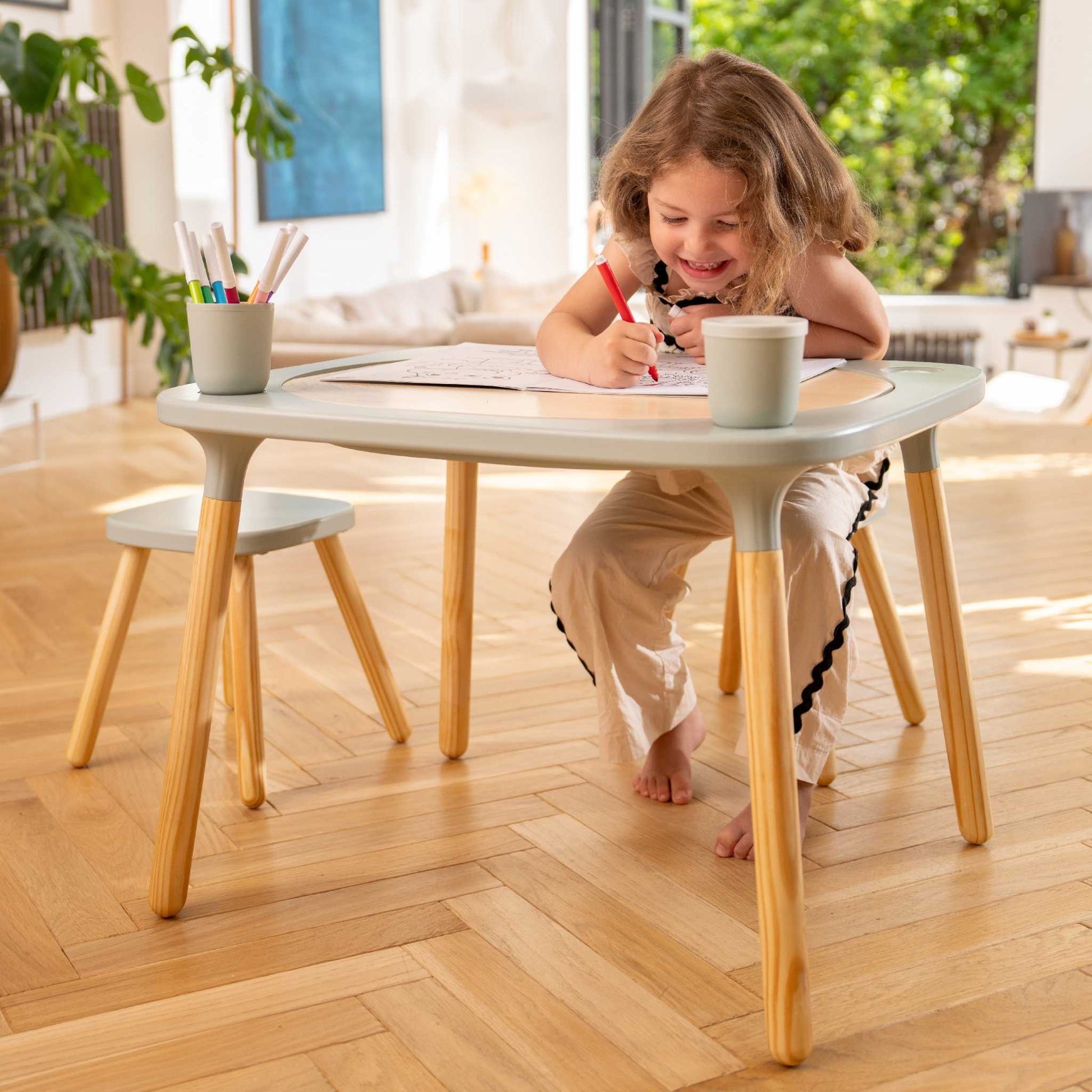 This sweet stool from TP Active Tots is ergonomically designed to give toddlers a comfortable and safe spot to sit. Whether it's time for lunch, play, or creative activities, the stool offers steadfast support, giving children confidence in their physical ability. The legs of the stool detach easily making it simple to store without occupying too much space. The solid pinewood adds extra durability, and the gentle colour tones allow easy matching with pre-existing décor. This lovely stool provides the perfect spot for those calmer moments of play and rest.