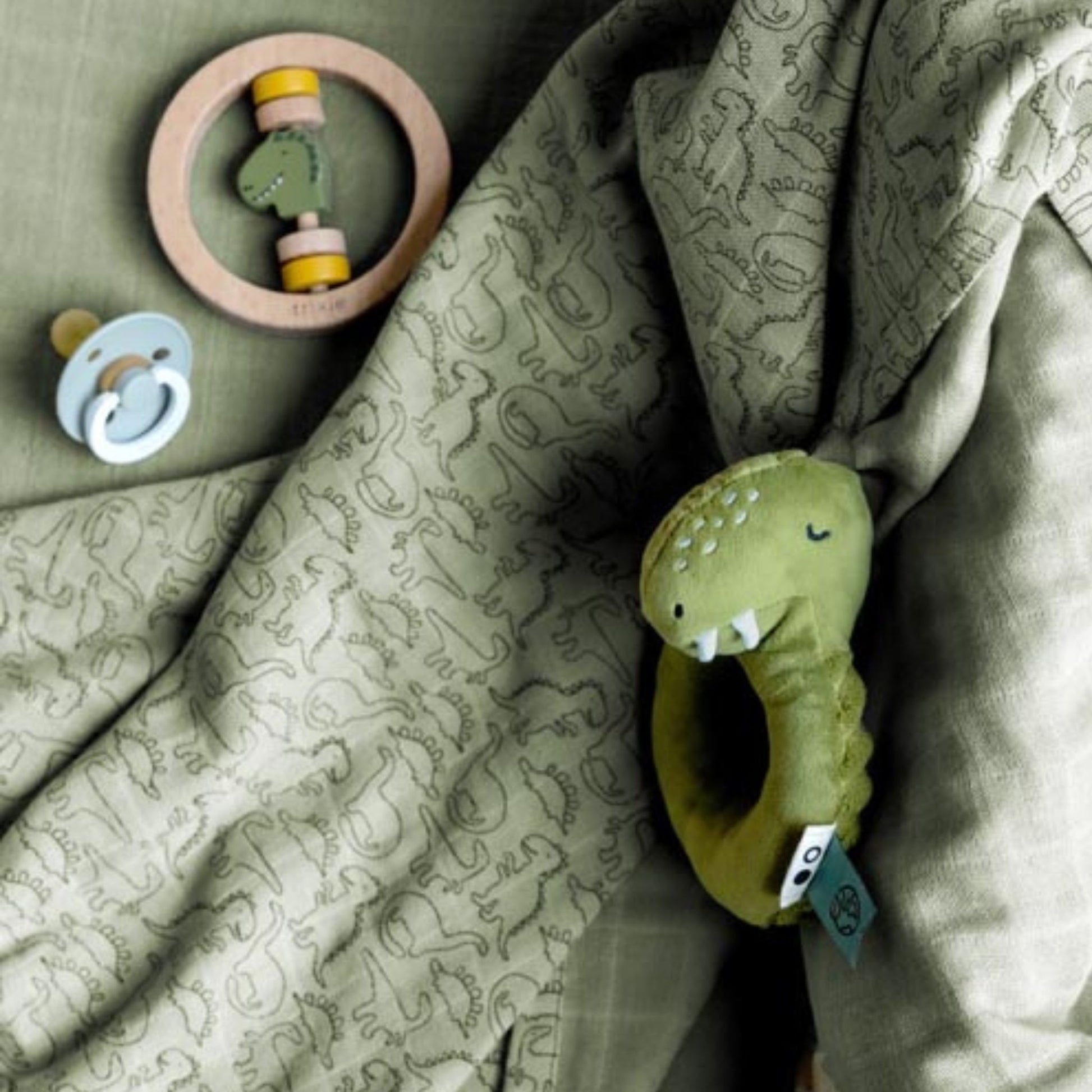 A perfect companion to keep your baby company and entertained, the Trixie Rattle - Mr. Dino will go everywhere with your little one.