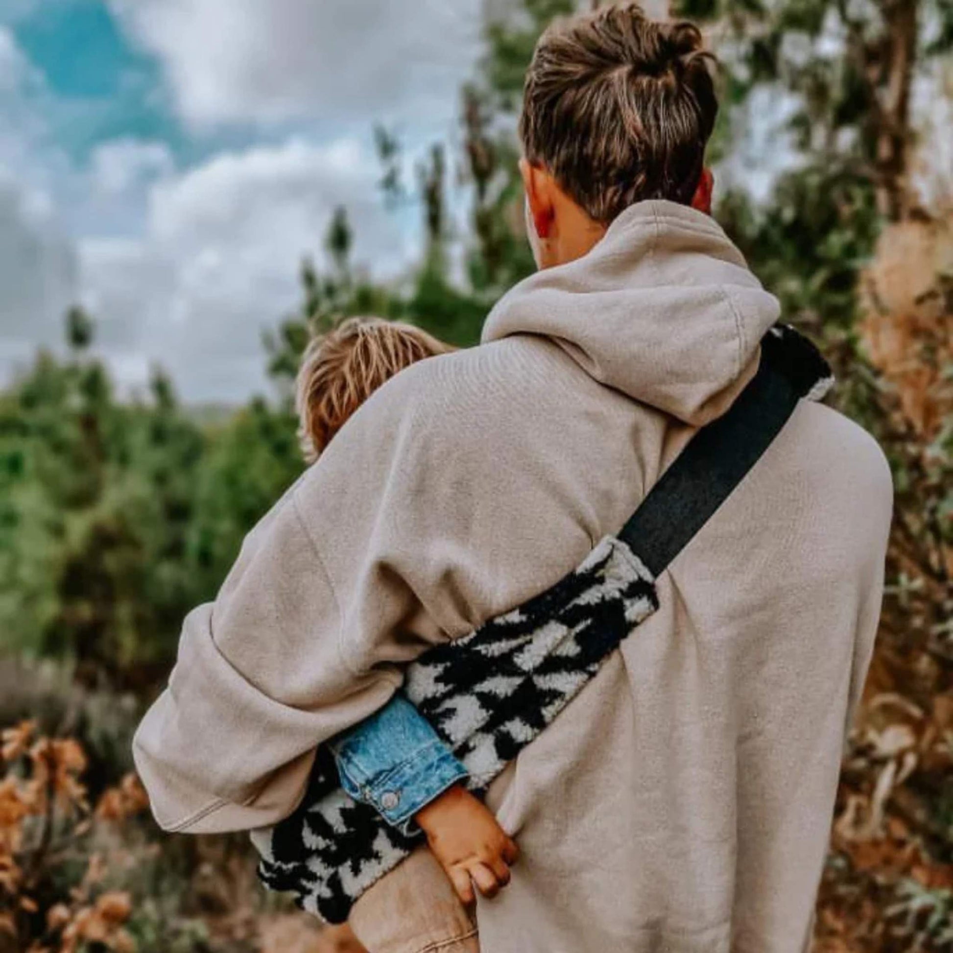 The Wildride Toddler Carrier opens the door to grand adventures, adding ease to exploration with toddler in tow. Thoughtfully crafted with clean lines, the Toddler Carrier offers comfort and support for little ones while easing the strain of longer carries for parents. The innovative shape and structure spreads the weight of your passenger - allowing carries and fun to last longer for all. The Houndstooth Teddy design brings a modern, graphic twist, pairing seamlessly with your own choice of aesthetic and outfit. The soft teddy fabric gives a cosy, warm feel.