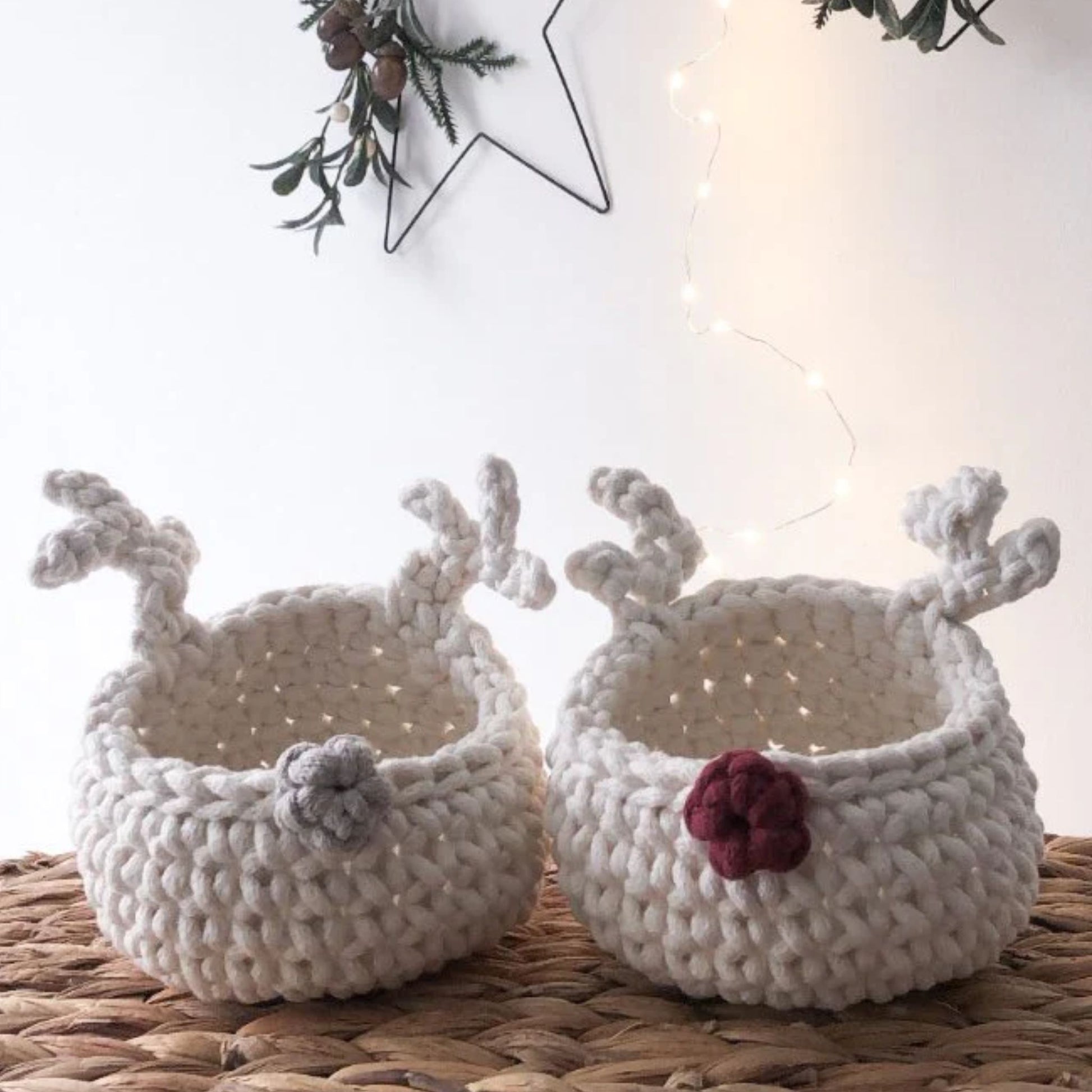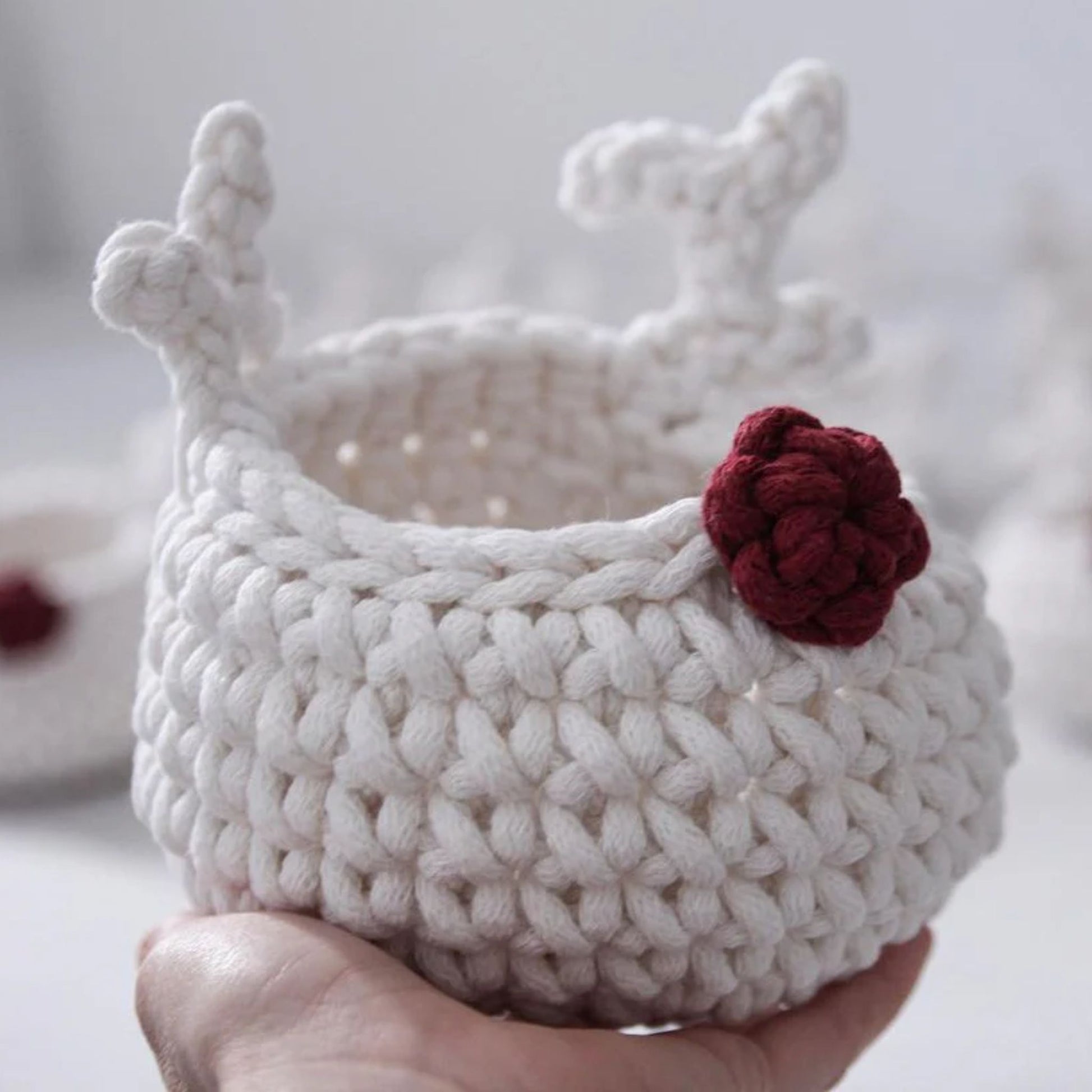 Zuri House Crochet Reindeer Basket - Ivory