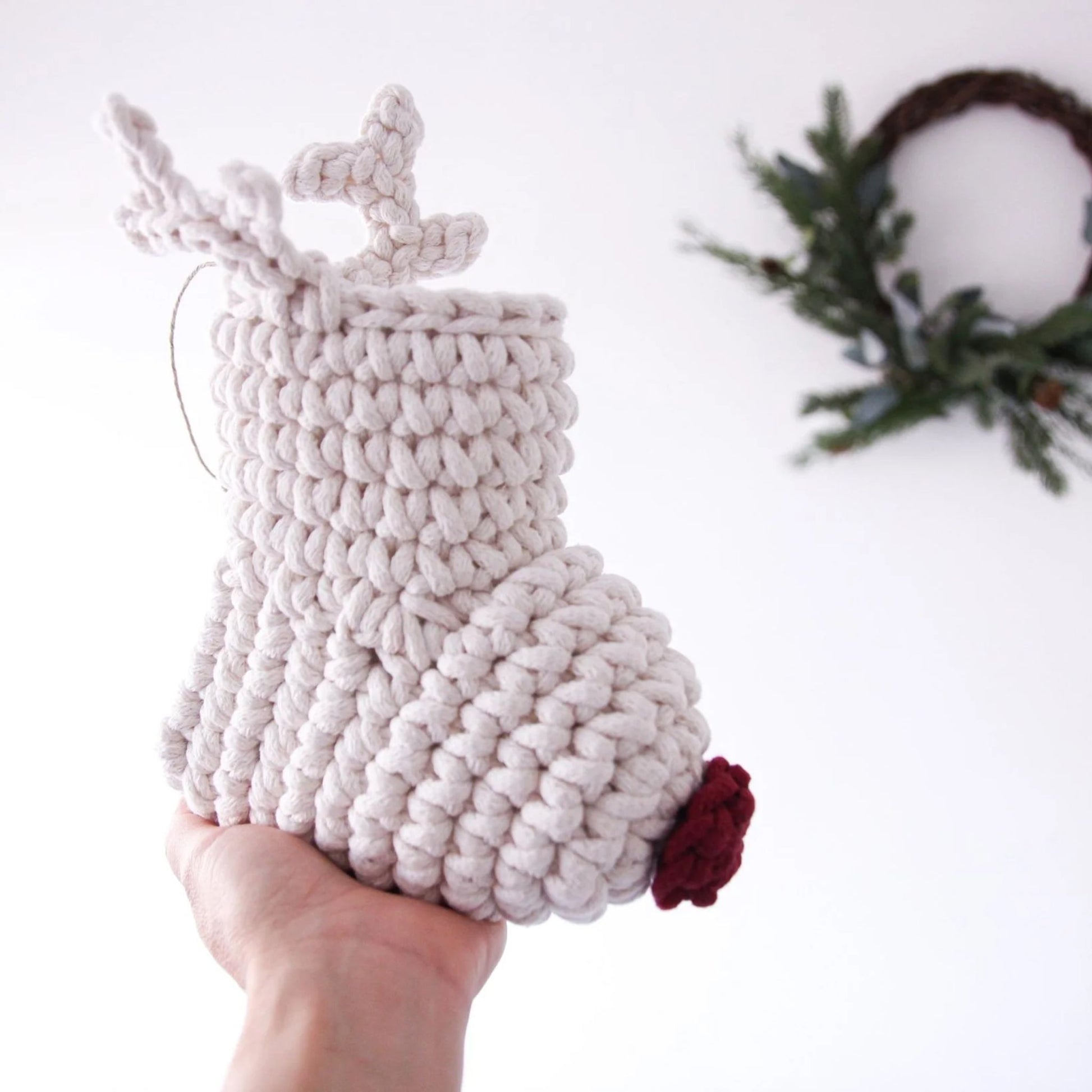 This Crochet Reindeer Stocking from Zuri House is the perfect way to introduce your little one to the most exciting of Christmas traditions. Caringly hand crocheted with love, this stocking will bring warmth and style into your home ahead of the big day. Fill it with goodies from Santa, then watch your little one's face fill with joy when they look inside.