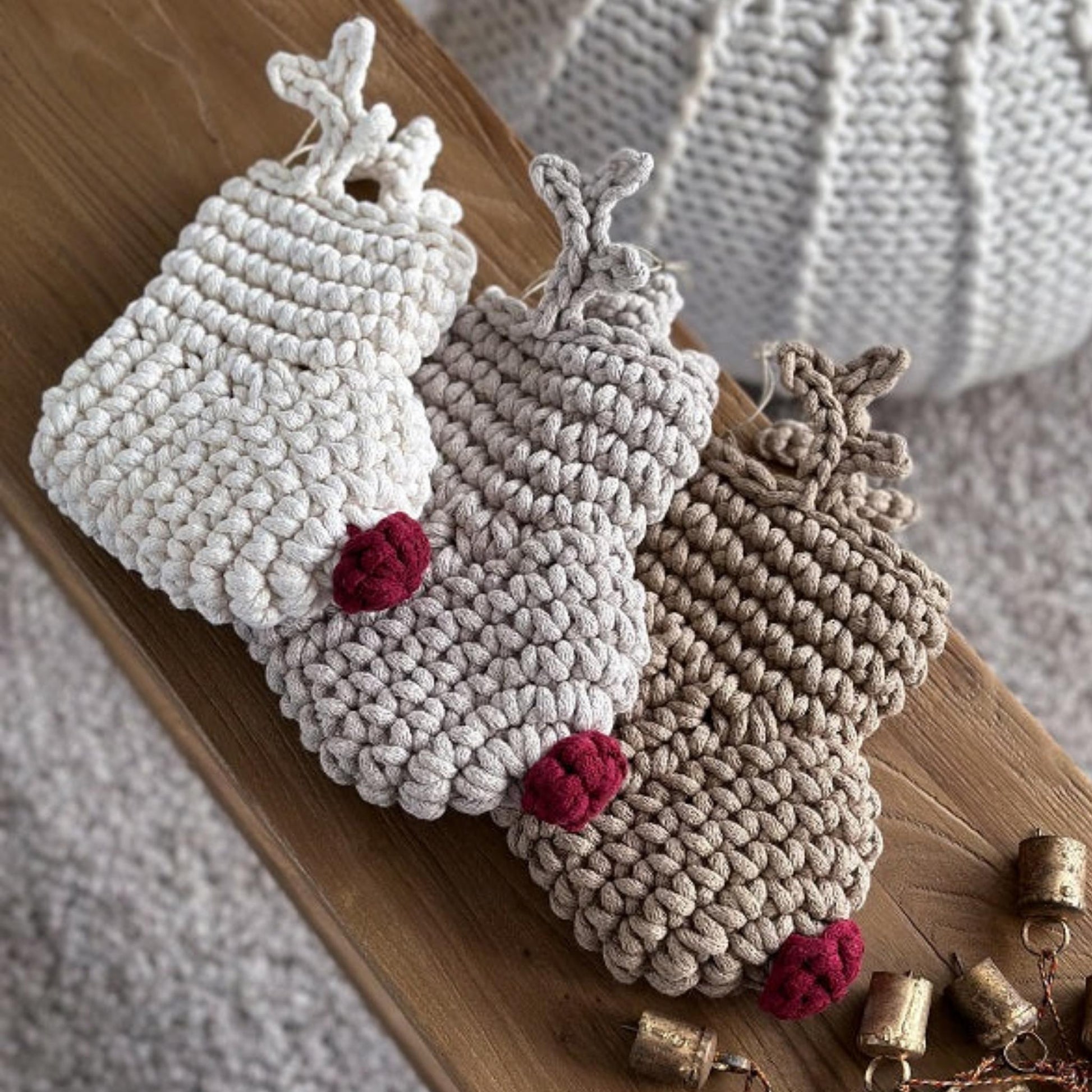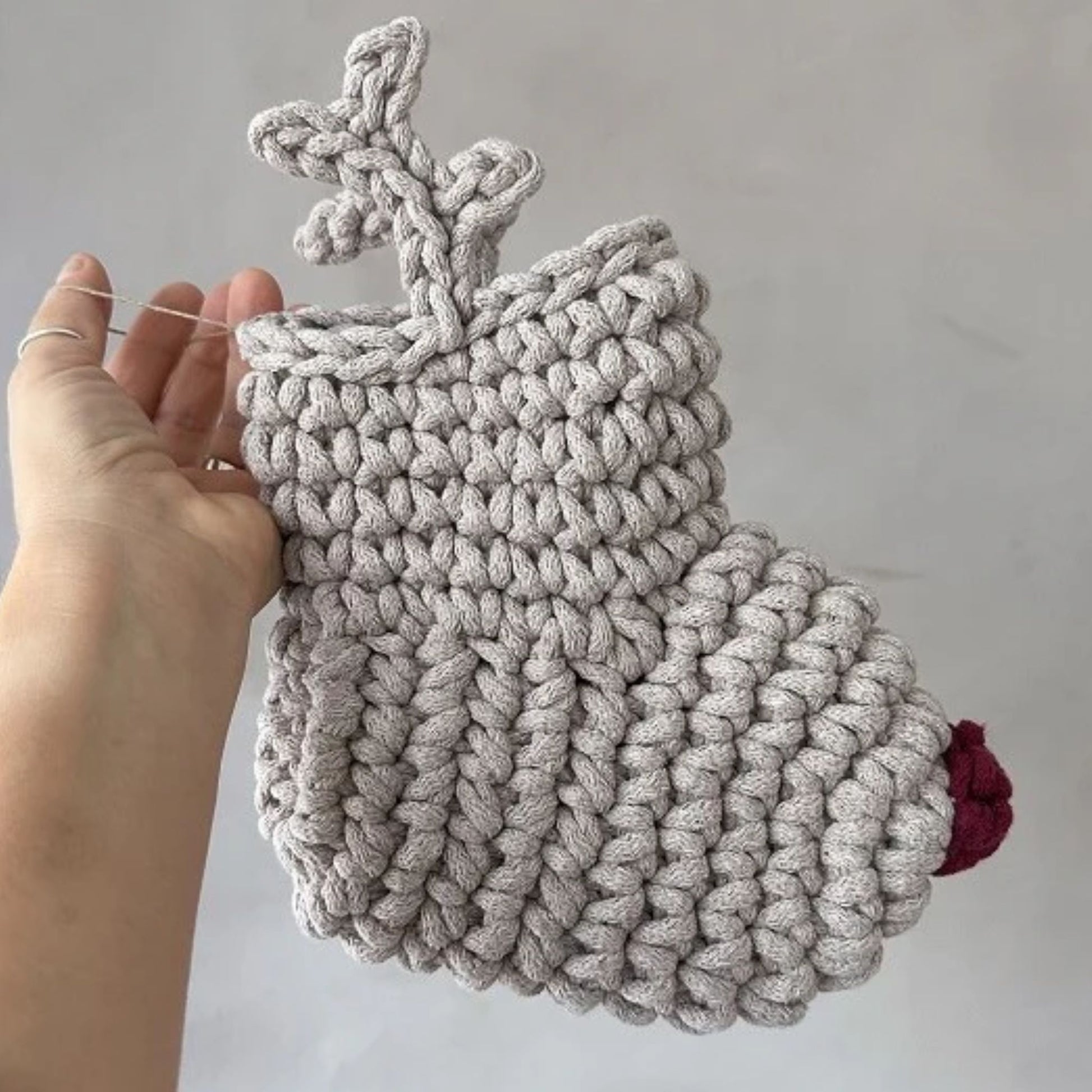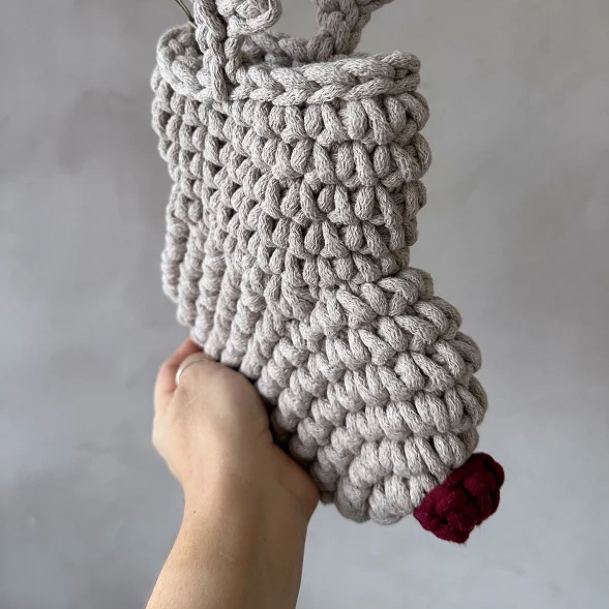 Zuri House Crochet Reindeer Stocking - Oatmeal