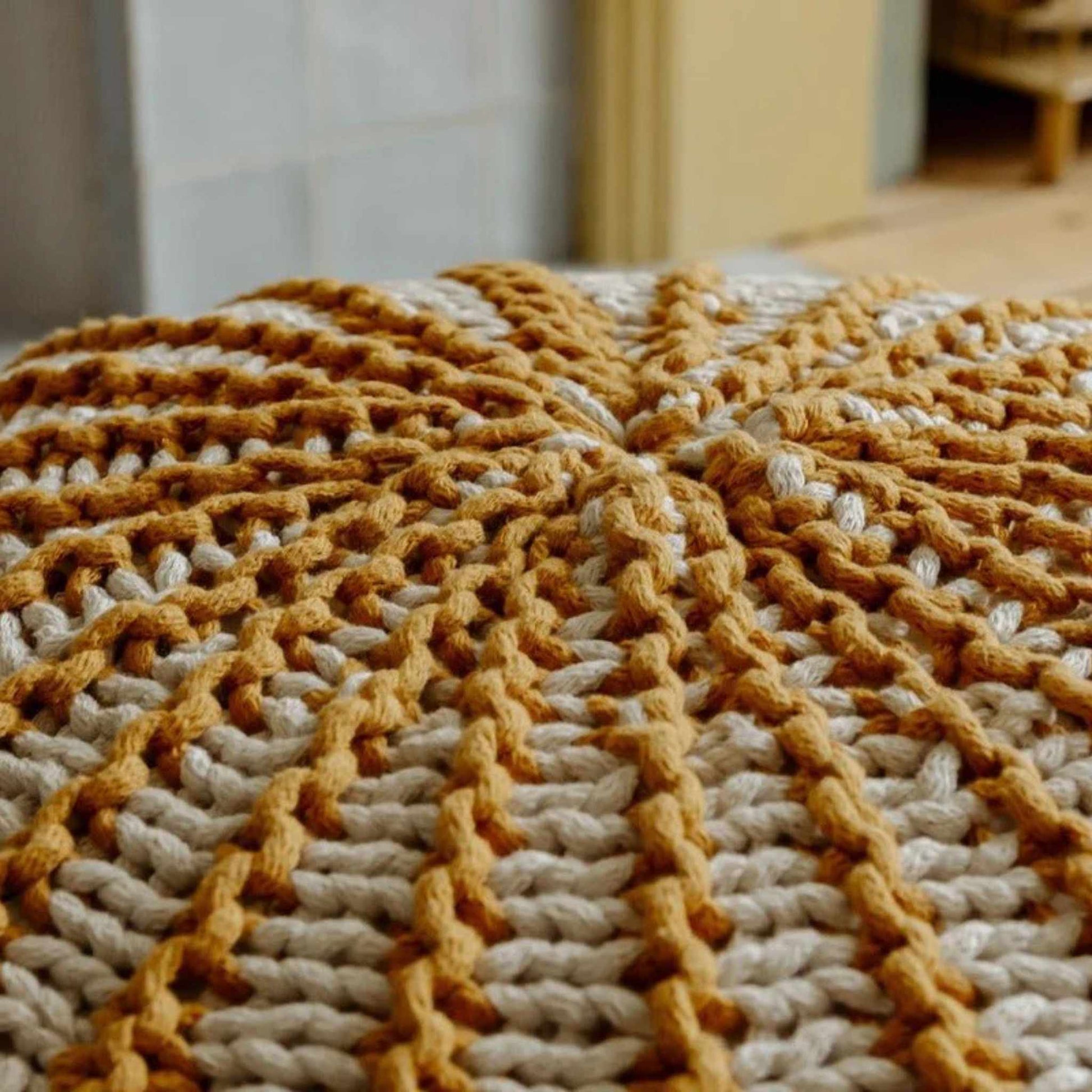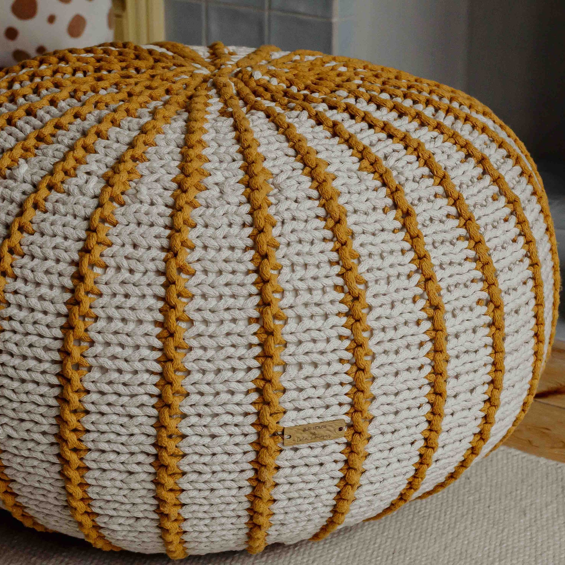 Introducing the Beautiful Zuri House Ziggy Pouffe in Mustard. Designed to combine playful character with timeless style, these hand-knitted pouffes bring warmth, comfort, and a touch of colour to every room.